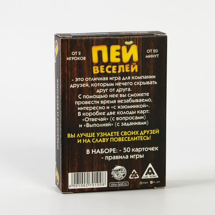 Купить игра для компании "пей веселей" 50 карт от 180 руб. с доставкой до пункта выдачи в Шатуре. Интернет магазин ДекаМаркет. Оплата при получении.